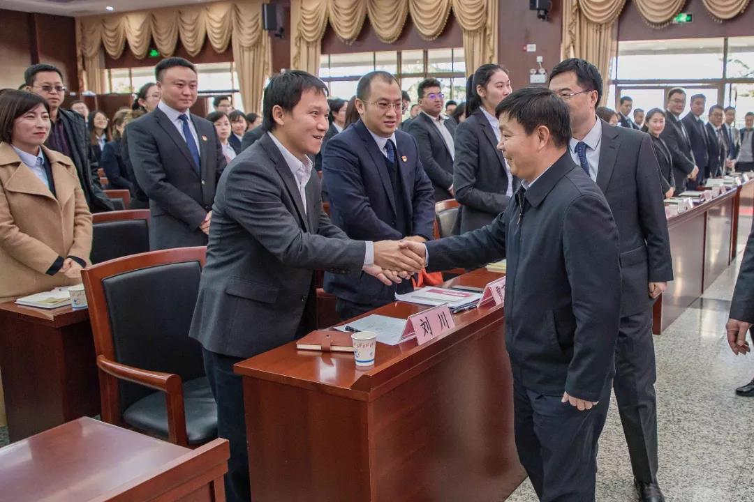 在總結(jié)會會場,張巖松廳長與省農(nóng)擔(dān)公司優(yōu)秀員工親切握手,一一詢問大家的工作情況。張巖松廳長對2018年省農(nóng)擔(dān)公司取得的不俗成績給予了充分肯定。他表示,全體農(nóng)擔(dān)員工按照省委、省政府的安排部署,開拓創(chuàng)新、銳意進(jìn)取,機構(gòu)覆蓋全省16個州市,業(yè)務(wù)覆蓋118個縣,圓滿完成新增涉農(nóng)貸款擔(dān)保50億的任務(wù),是大家共同努力、辛勤工作的成果,值得鼓勵和祝賀。