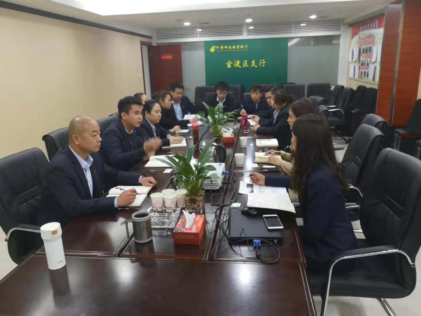 為積極推動尋甸辦事處與中國郵政儲蓄銀行昆明市官渡區(qū)支行的進一步合作,2019年2月19日,農(nóng)擔二部工作人員王景攜尋甸辦事處人員與中國郵政儲蓄銀行昆明市官渡區(qū)支行馬青行長、符捷鵬副行長及相關業(yè)務負責人開展了2019年度業(yè)務啟動洽談會。