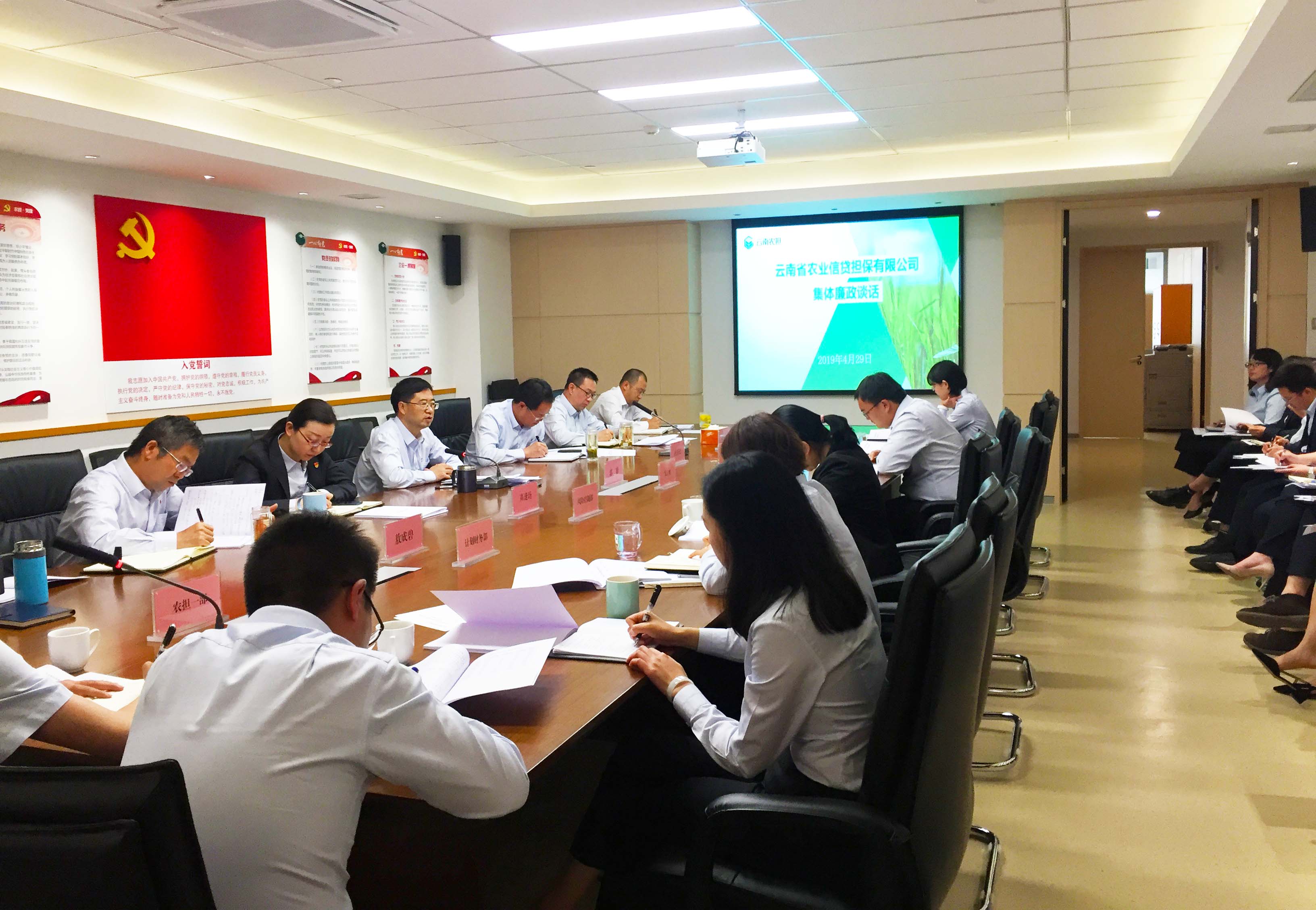 4月29日,云南省農(nóng)業(yè)信貸擔保有限公司利用召開春季業(yè)務(wù)推進會之機,開展了集體廉政談話。公司黨支部書記、董事長郭影同志向參會的公司領(lǐng)導(dǎo)、各部門及各分支機構(gòu)負責(zé)人、業(yè)務(wù)主管等進行了集體廉政談話。