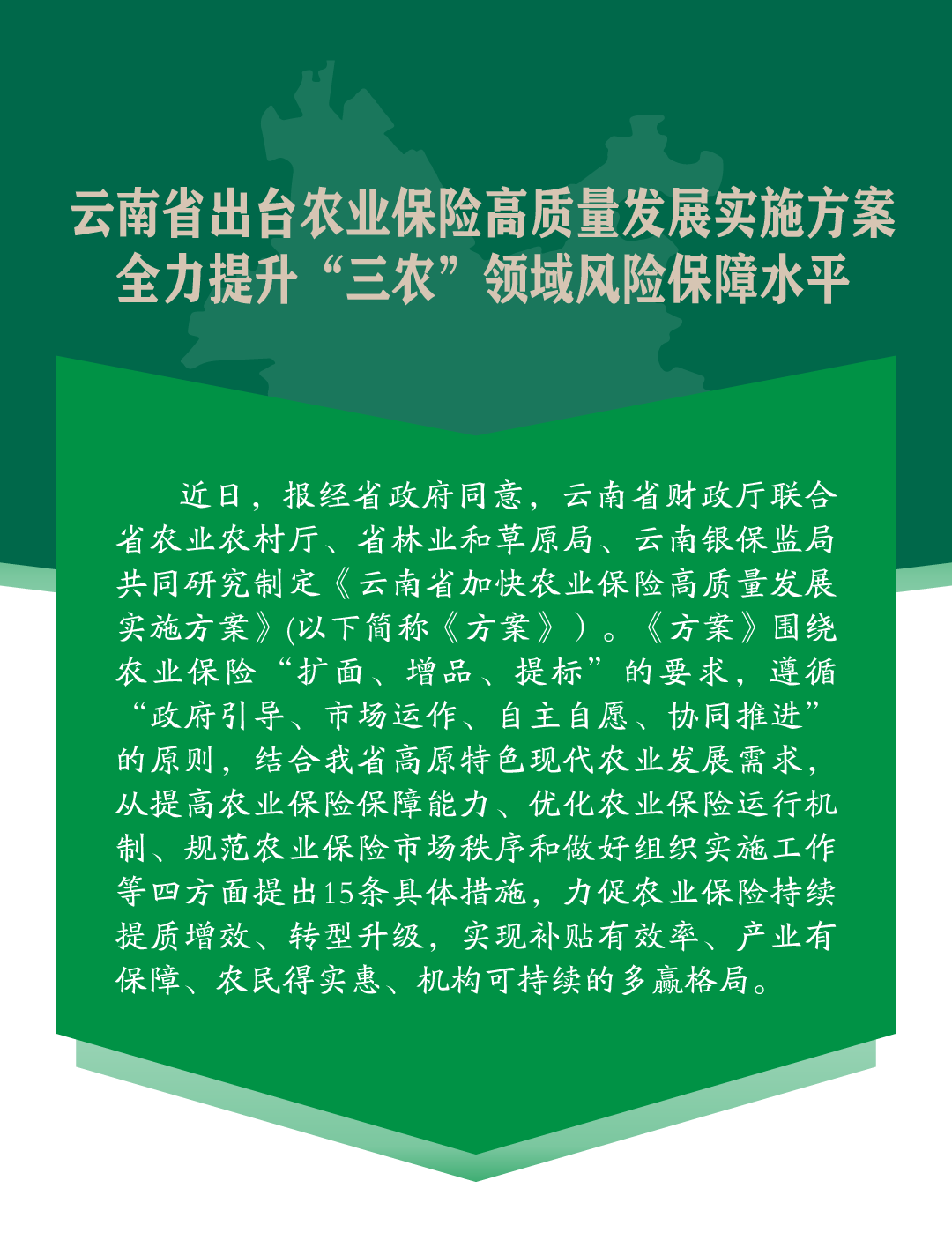 云南省出臺農(nóng)業(yè)保險高質(zhì)量發(fā)展實(shí)施方案 全力提升“三農(nóng)”領(lǐng)域風(fēng)險保障水平