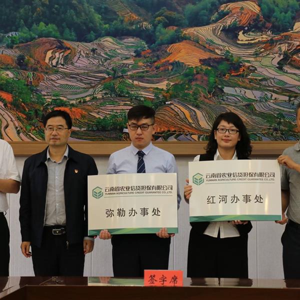 8月21日上午云南省農(nóng)業(yè)信貸擔(dān)保有限公司與紅河州人民政府戰(zhàn)略合作協(xié)議簽訂暨公司紅河辦事處、彌勒辦事處授牌儀式在紅河州會(huì)堂正式舉行。