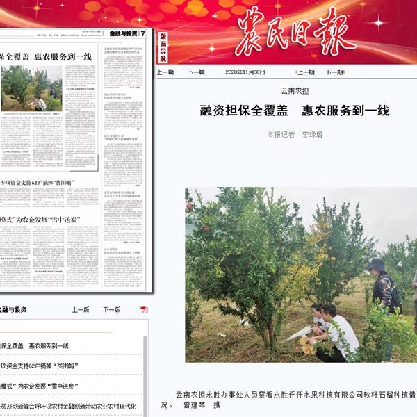 《農(nóng)民日?qǐng)?bào)》點(diǎn)贊云南農(nóng)擔(dān)惠農(nóng)服務(wù)見(jiàn)成效